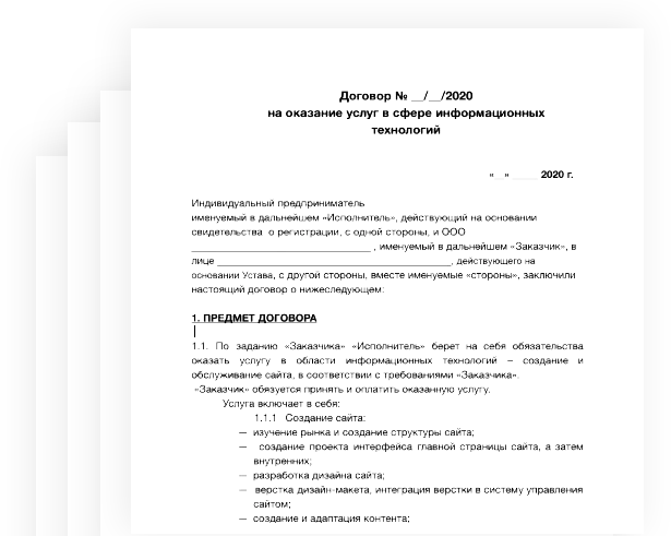 Еще перед началом работ мы заключим с вами договор, в котором пропишем все условия и результаты нашей работы.